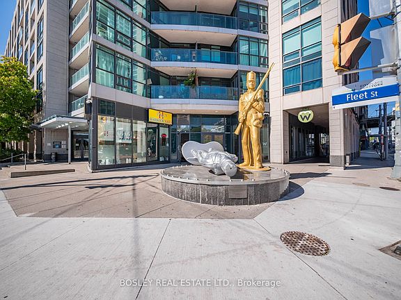 Beautifully renovated 1-bedroom condo in an unbeatable lakeside location! This bright west-facing unit features wide plank laminate floors throughout, floor-to-ceiling windows with walk-out to balcony that fill the space with natural light, and a spacious bedroom with double closet and large window. The upgraded kitchen offers new stainless-steel appliances, an extended breakfast bar with additional seating, and new in-suite laundry. Take advantage of the buildings impressive amenities, including a glass-enclosed pool and hot tub, spacious outdoor terrace, community garden, party room, billiards lounge, and fitness centre with a wraparound patio perfect for outdoor workouts. Groceries, Shoppers Drug Mart, LCBO, and Petro-Canada are directly across the street for added convenience. TTC, Bike Share, and ZipCar located directly outside the building offering flexible ways to get around, with Exhibition GO Station, Budweiser Stage, Rogers Centre, Scotiabank Arena, Queens Quay, Harbourfront, and King Street all just a short stroll away. This is the perfect blend of comfort, convenience, and vibrant city living!