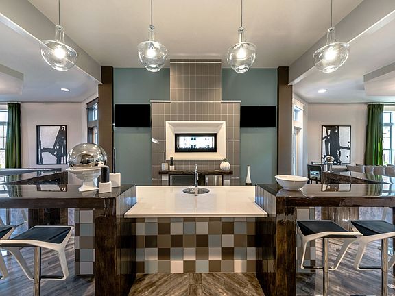 - Exterior features: Availability 24 Hours, Balcony, Breakfast Bar *in select units, Business Center, Cabana Area w/ Fire Pit, Coat Closet, Coffee bar, Conference Room, Cornhole, Detached Garages Available, EV charging stations, Free Weights, Kitchen Island, Media Room, On-Site Management, Online Rent Payment, Outdoor Chess, Outdoor Kitchen, Package Receiving, Pantry/Closet Shelving, Pet Friendly, Resident Clubroom, Resident Pet Grooming Station, Separate Dining Area *in select, Smart Home Technology, Social Events & Activities, Standard Tub, Visitor Parking