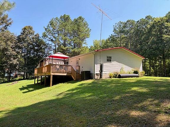 Beautiful country setting on 5.2 acres with a stocked pond including bass, bluegill, cropie, catfish and carp, fenced area for chickens, huge deck with Gazebo, trees, for shade and a lovely doublewide with a 2 car garage with electric plus a covered front porch. You've got everything you need to enjoy life right there. House is an open concept with plenty of room for your family and all of your activities. You'll enjoy the wood burning fireplace for those chilly days as well as the dining room for those family gatherings and roomy bedrooms and closets. It's all there waiting for you. Dining room suite and master bedroom suite can be purchased separate. Stained glass fan does not stay in master bedroom. As-Is condition. Seller unable to do repairs. NOTICE: SELLER SECURITY CAMERAS ARE ON DURING THE SHOWING. CAMERAS DO NOT CONVEY TO THE NEW OWNER.