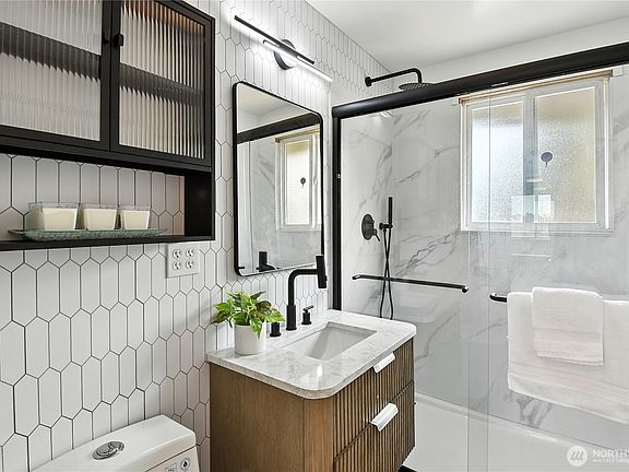 Welcome to historic Renton Hill, where charm meets modern living! Large windows fill this home with natural light and original wood floors highlight the living area. Recently refreshed, it features a stylish new kitchen with custom butcher block counters, range hood and built-in seating. The bathroom has sleek, modern finishes with a walk-in shower. Though cozy in size at 920 sq ft, the home sits on a generous lot—offering plenty of room to expand or add an ADU and take advantage of the surrounding views! Enjoy the vibrant character of this sought-after community, with its rich history, easy access to shops, dining, parks and freeways. This is the perfect blend of comfort, style, and opportunity.
