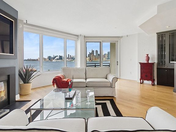Enjoy panoramic views of the Hudson River and iconic NYC skyline from every room in this one-of-a-kind, combined residence currently set up as a 2-bedroom with two living room spaces. This home has 2 fireplaces, 2 balconies, and 2 deeded parking spots. Bathed in natural light, this expansive residence features a beautifully renovated open kitchen with modern appliances, sleek cabinetry, a wine fridge, and generous storage—perfect for both cooking and entertaining. The oversized living and dining areas each boast a wood-burning fireplace, adding warmth and character to the home’s stylish design. Two private terraces provide the ideal spots to enjoy sunrises, sunsets, and unbeatable views of the water and city skyline. Residents enjoy 24-hour concierge service, a state-of-the-art gym, an indoor pool, and two assigned parking spots. Perfectly positioned on the Weehawken waterfront, with the NYC Ferry, Light Rail, and Bus just moments away—and Whole Foods right across the street—this home offers the best of luxury living and everyday convenience.
