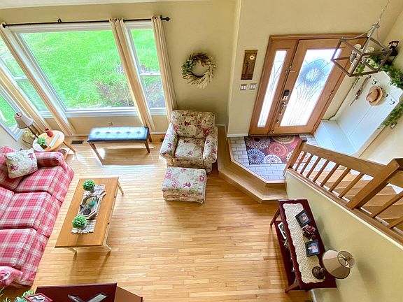 This stunning contemporary home offers an open floor plan with 5 bedrooms and 2 recently updated full baths, plus 2 half baths. The modern updated kitchen features granite countertops, perfect for culinary enthusiasts. Enjoy cozy evenings by fireplace. Fully finished basement , offers additional living space . 2 car garage ensures ample storage . Recently upgraded with sleek new black windows, adding a striking modern touch to the exterior. Set on a generous .53-acre lot, Step outside to a wraparound deck, ideal for entertaining, surrounded by a well-maintained yard. No HOA