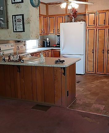 This home is in a very nice quiet neighborhood. It is a 2 bedroom 1.5 bathroom and has lots of storage. Does have lot rent of $550 includes water garbage and lawn maintenance.