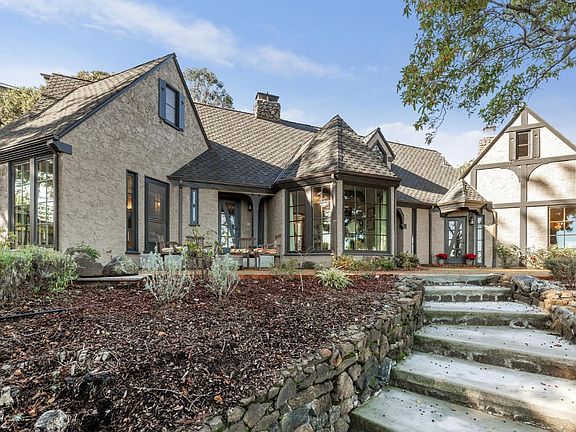 Enchanting Tudor-style estate nestled atop a private cul-de-sac with breathtaking Bay views. This meticulously remodeled gem masterfully blending vintage allure with contemporary luxury. Fine craftsmanship with gorgeous design elements, top quality finishes, vaulted exposed-beam ceilings, and exquisite molding. Sophisticated home office with rich wood paneling. A chef's kitchen boasts garden views, top-quality stainless appliances, shaker cabinets, and quartz counters. Elegant dining room with panoramic views. The main level includes a luxurious primary suite with a spa-inspired ensuite and garden access plus well-appointed secondary bedroom. Upstairs, a secluded suite. Additional spaces such as sunlit playroom, laundry area, and mud room. Ample storage with unfinished basement and walk-in attic. Outdoor living with brick & masonry hardscaping and gazebo amidst verdant landscaping, all against stunning panoramic views. Recent upgrades include new walkways, French drain systems, all-new fencing, all-new windows, upgraded electrical w/ added EV charger, new plumbing, gas lines, and sewer line. With close proximity to vibrant downtown shops, dining, and highly acclaimed Belmont Schools, this residence bridges the gap between a serene retreat and the dynamic Silicon Valley lifestyle.