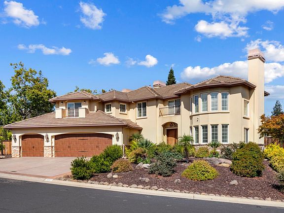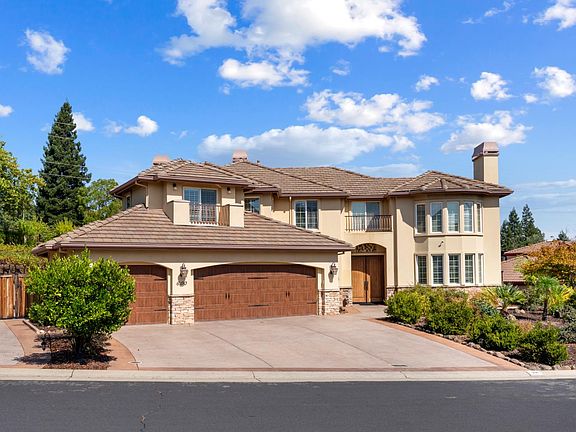 Set on an expansive nearly .50 acre LEVEL lot in prestigious American River Canyon North, this 5 bedroom, 3 bath custom home exudes timeless elegance. Inside, you'll find stunning travertine flooring, formal living & dining rooms. There's a full bedroom & bathroom located on the main floor. The spacious family room boasts a cozy fireplace & views of the backyard. This gourmet kitchen is designed to impress, complete with a gas cooktop island, granite countertops, cabinetry, stainless steel appliances, a built-in wine bar with refrigerator & breakfast nook. Upstairs, a loft offers living space, while the luxurious primary suite includes a sitting area, unique fireplace & spa-like ensuite bath with tub, walk-in closet, shower stall & romantic fireplace. Additional bedrooms are generously sized with ample closet space. The backyard is the show stopper with an incredible outdoor covered entertaining area, complete with an outdoor kitchen, firepit & dining area. A custom pebble tech pool & natural rock waterfall sits amidst your own VINEYARD! Sunsets on the deck with plenty of privacy. There's an oversized 3 car garage & side driveway with rolling gate for large RV storage. Located in a family-friendly neighborhood & easy access to Folsom Lake & Sutter Street!