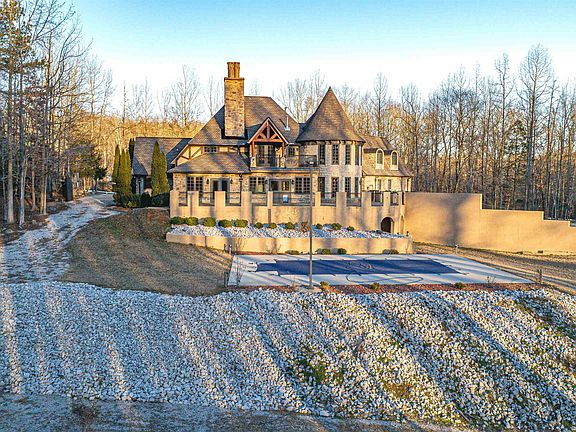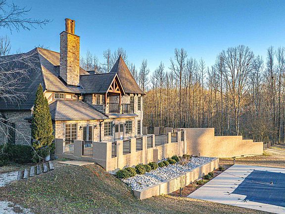 This stunning 5-bedroom, 4-bathroom home on 6.89 acres features exquisite stonework inside and out. The living room boasts a grand stone fireplace, and the chef’s kitchen includes a large island, perfect for entertaining. The breakfast room showcases beautiful stone walls. The spacious primary suite offers a lofted reading area and a luxurious bath. Each bedroom is uniquely designed with specialty ceilings, adding character and charm. A hidden staircase leads to a bonus room, while a back staircase connects to a bedroom, full bath, and a huge playroom. Outdoors, enjoy an inground pool, a pond, a barn, and a children’s playhouse. With 3 garages, this home offers both elegance and practicality for a perfect family retreat.