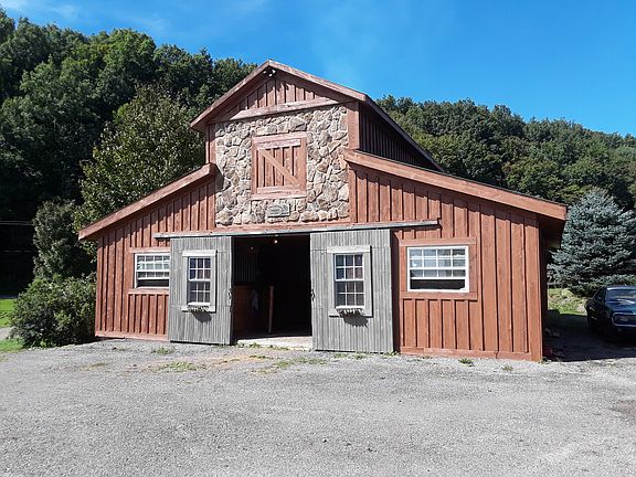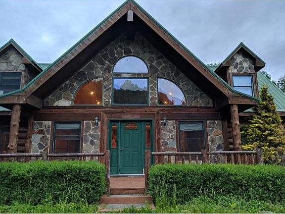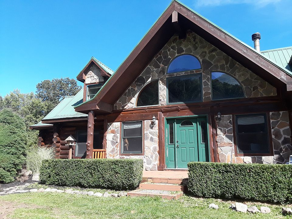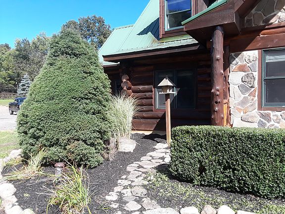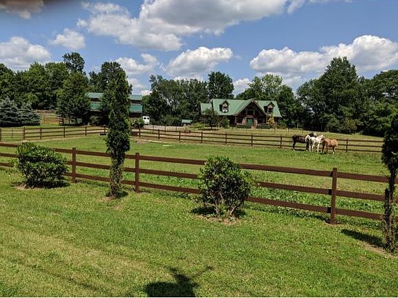 Beautiful contemporary log home on 5 acres mostly fenced for horse pasture and riding arena. 2 story barn with 4 box stalls, tack room and garage. Great room with cathedral ceiling and stone fireplace reaching the ceiling Open deck off the living room with view of the woods. Large front porch over looking the horse pasture. Large stone storage building, barn has water and electric. Must see!!