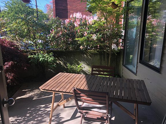 Bright open 2 bedroom 2 bathroom 1100 square foot apartment with hardwood floors, updated appliances, washer/dryer in unit, real wood fireplace, a large porch with an overhang and planting area and a second smaller porch off the kitchen. Master unit includes walk-in closet and en-suite bathroom. Second bedroom includes closet and redone bathroom. Heating is through wall vents and radiant heat, also includes two parking spaces in a secured garage and a 4x8 lockable storage unit in the garage as well, and a bike rack. The unit is on ground floor, facing quiet street, with cloth silhouette blinds for light and privacy. Building is small and tight-knit so being friendly to your neighbors is a plus. 15th Avenue is very walkable and has restaurants, bars, bakeries, grocery, pharmacy, but is still quiet. Close to Volunteer Park, Broadway, and easy access to 520/I-5 and to SLU/Downtown with bus access 200 feet from the front door. Renter pays electric and internet, all other utilities covered.