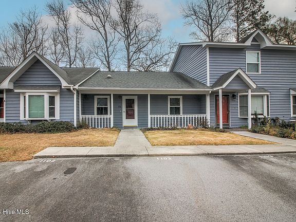 Welcome to this delightful 2-bedroom, 1-bathroom townhome, ideally located for both convenience and coastal living. Nestled in the heart of Morehead City, this property is just moments away from the hospital, shopping, and a short drive to the stunning beaches of the Crystal Coast. Key features include a spacious living area with a vaulted ceiling that adds to the open feel, complemented by a cozy electric fireplace with built-in shelving; the eat-in kitchen has a functional layout perfect for casual dining and entertaining; updated bathroom that has been thoughtfully refreshed for modern comfort, including a glass walk-in shower. Other features include updated light fixtures, recessed lighting in kitchen and living room, new French door in kitchen, large double-slab back patio, attached storage shed, and recently updated windows (2022) and kitchen range (2024). Please note that the living room television conveys. The property also boasts on-site maintained open storage for trailers, extra vehicles, campers, ATVs, and boats, for just $100/year. This prime location is close to all that Morehead City has to offer, including dining, entertainment, and outdoor activities. Enjoy the neighborhood pool and walking paths. Whether you're seeking a peaceful retreat or a vibrant lifestyle near the coast, this townhome is the perfect fit. Schedule a tour today and discover your new home!