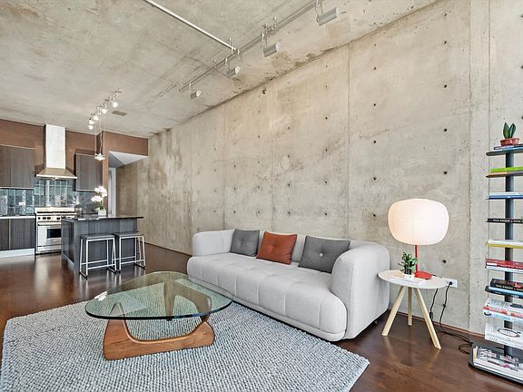 Experience the ultimate in luxury urban living in this stylish 2-bedroom, 2-bathroom loft designed by world-renowned architect Helmut Jahn. This modern corner unit features soaring 10ft raw concrete ceilings, floor-to-ceiling windows, and mocha hardwood floors throughout. Open living/dining area with high end finishes, such as venetian plaster, Snaidero cabinetry, and a recessed balcony to enjoy the fantastic city views. Beautiful kitchen equipped with Subzero refrigerator, Wolf range, range hood, and large island that seats four. Sizable primary suite equipped with sheer plus blackout shades, custom built walk-in closet, and a large white marble bathroom with separate shower and tub. Spacious second bedroom with organized closet, blackout blinds, and adjacent full bathroom with unique timber marble shower. Both bedrooms are fully enclosed. Residents enjoy unmatched amenities, including a rooftop deck with breathtaking surrounding views with grilling stations, an indoor lap pool, state-of-the-art fitness center, a sky lounge with private conference hubs, and 24/7 door staff. Located just two blocks from Michigan Avenue, Lakefront, Riverwalk, and Whole Foods, this prime location offers unbeatable convenience. Garage parking included. Perfect for those seeking the best in Chicago luxury real estate.