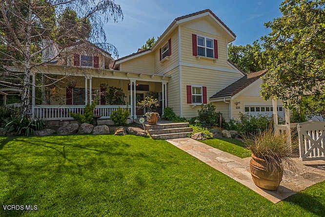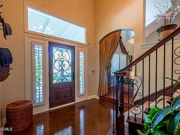 Start packing! You will fall in love with this stunning turn-key entertainer's home in beautiful Conejo Oaks. Exquisitely updated w/ only the finest quality. Gorgeous acid stained concrete floors in entry,kitchen & family room. Totally remodeled cook's kitchen w/ granite counters, Wolf range, Sub Zero fridge, walk in pantry and eat up brkfst bar- all open to family room w/fp & wood beam ceiling accents. Luxurious living & formal dining w/ vaulted ceilings & rich wood floors. Downstairs bdrm/office has custom blt- ins including a desk. Don't miss the one of a kind, dream laundry room w/wine fridge & sink. At the top of the dramatic staircase is a library w/blt- ins. All upstairs bedrm closets are customized. Master suite w/ vaulted ceilings & fp. Fully remodeled contemporary master bath w/ spa tub w/colored lights, separate rain shower & dual vanities. TONS of storage inc. 2 full sized attics! Lush and secluded backyard professionally landscaped w/ waterfall & pond. Private front yard has a charming covered porch.Do NOT miss this one! Truly an impressive property!