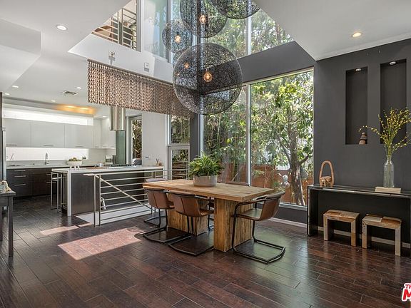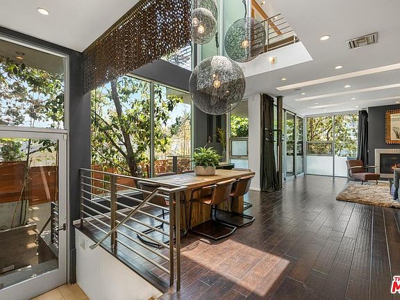 Stunning architectural townhome in the heart of West Hollywood. This feels like a private residence with a turf yard, 4 balconies & private 2 car garage. 3 levels plus a roof top deck with a spa and panoramic views of the Hollywood Hills, City Lights, Palm trees and the city of Angels below. 3 large en suite bedrooms plus a large bonus room/office with a separate entrance & kitchenette. Clean, white modern kitchen with Viking Stainless Steel appliances and dark wood floors throughout. Sliding floor to ceiling glass doors, dramatic dining attirum with cathedral ceilings, sky lights and sound system with built in speakers. Master suite with large walk-in closet and luxurious bathroom. Each room has large closets and plenty of extra storage areas. 2 unit building has extreme privacy. Near some of the cities best restaurants and shopping.
