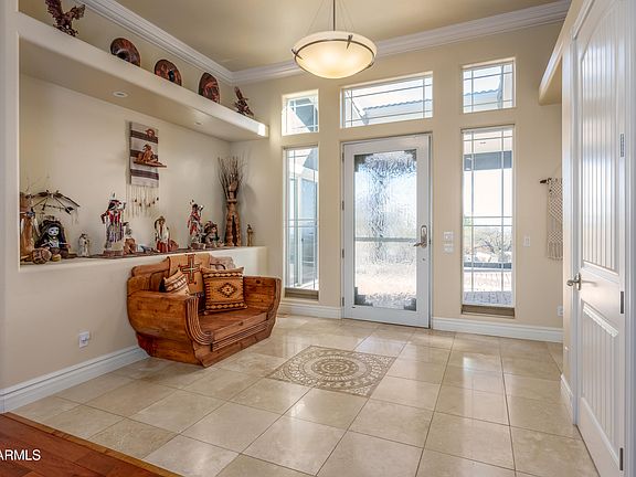 A primary suite with private sitting area, bay windows, and cozy fireplace compliments the adjoining spa-like bathroom that includes separate soaking tub, dual vanities, and a walk-in shower. The great room is designed for both comfort and entertaining with 180° views of the Verde Valley framed by expansive windows that seamlessly blend indoor and outdoor living. A formal dining room enhances the flow and commercial grade kitchen makes hosting effortless.