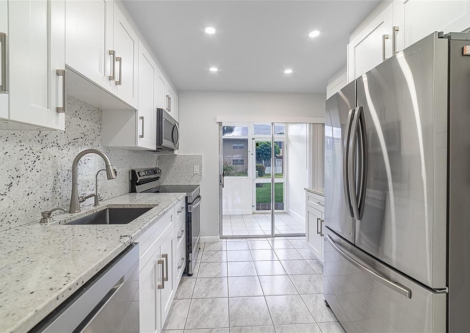 Beautiful 1 bedroom 1 1/2 bath first floor unit located in Oriole Gardens ll 55+ community. Totally renovated and permitted kitchen and master bathroom, renovated guest bathroom. All rooms were painted with hight quality primer and paint. All ceilings flat and smoothed with popcorn removed. Hurricane shutters installed in 2022 that look and operate like new. Updated master bedroom closets in 2021. New A/C blower motor and total AC clean in 2022. Reserved parking spot in front of unit with spot light over head. Oriole Gardens 2 is a very quiet community and the building it self very quiet. Laundry, storage, and mailbox located next to unit. New publix, walgreens, and restaurants vey close. Don't miss out on this beautiful unit.