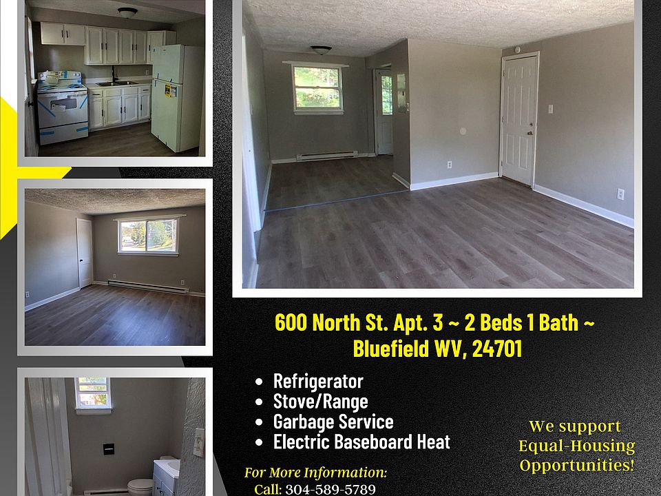 600 North St. Apt. 3 ~ 2 Beds 1 Bath ~ Bluefield WV, 24701