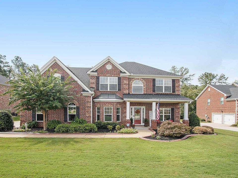 Executive Home w/ exquisite features EVERYwhere! Huge 5 bedroom all brick two story estate home with 3 full bathrooms situated on a quiet cul-de-sac lot. Main floor features beautiful hardwood flooring, a secondary bedroom with attached full bath, office, and formal dining room with coffered ceiling. Family room boasts beautiful stone gas log fireplace and coffered ceiling. Large open kitchen w/ granite countertops, breakfast bar, stainless steel appliances including gas cooktop and wall oven. Informal dining area leads out to oversized covered patio overlooking large backyard. Second floor features HUGE owner's suite with sitting area and luxurious bathroom with garden tub and separate tiled shower, and his and hers closets. Three more spacious bedrooms upstairs with full bathroom. Eagle's Brooke is a gated community with tennis courts, zero entry resort style pool with waterslide, olympic style lap pool, playground, active planned social events and features traditional homes.