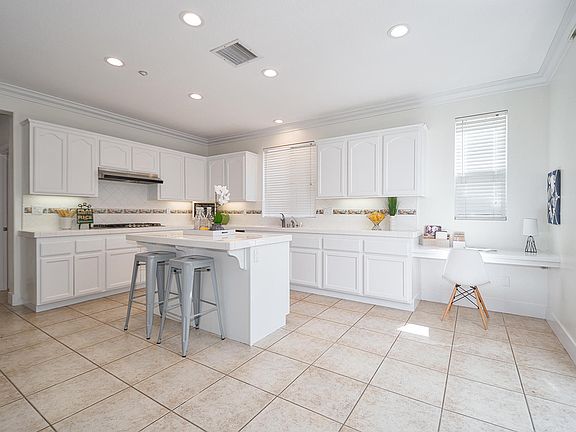 Living is easy in this beautifully designed, spacious 4 bed, 3 bath home. The striking living room makes an impressive gathering spot for entertaining family and friends. Its rich warmth is accentuated by high ceilings, an abundance of windows, and its arched entry into the heart of the home. The beautiful, open kitchen features plenty of cabinet space, built-in appliances, and an island with breakfast bar providing the perfect foundation to help simplify busy mornings and hectic weeknights. Second level features a cozy office nook, spacious bedrooms, and a master suite that feels much more like a private retreat. The backyard will keep summer going all year long, with its lush lawn, wrap-around patio and great built in barbeque with island.