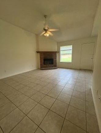 Wood burning fireplaceTile floorsOpen family roomKitchen appliances
