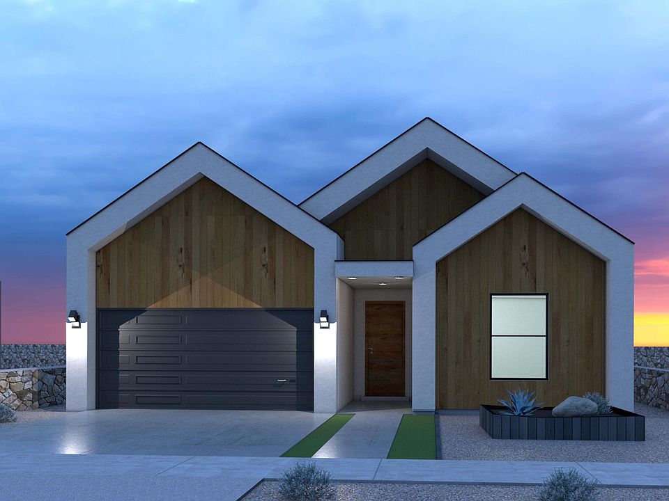 Modern Zely floor plan by Millennial Homes offering 4 bedrooms, 3 bathrooms, 1,942 sq ft, and a 2-car garage. Includes a mini master suite and a premium corner lot.