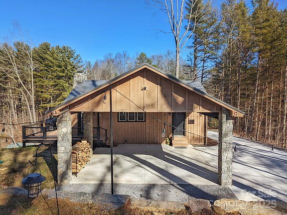 Pinewood Lodge a Beautiful Custom built home (2022) with long range views minutes from Waynesville. This stunning property is a Vacation Rental with a proven track record. Open Ranch plan, 3 BR/2.5 Baths, 2 Car Carport, Lots of windows and natural light, simplicity in one level living. Gourmet KT open to massive Great Room. Great room w/ custom stone hearth and fireplace w/ gas logs leading to wrap around deck perfect for entertaining. Powder room off GR. Open kitchen with vaulted ceilings, custom cabinetry, large stainless sink, cast concrete countertops, stone backsplash, high end stainless steel appliances, kitchen island with bar seating, and a 4.8x10 pantry. Durable vinyl plank flooring throughout. Owners suite w/ gas fireplace, vaulted ceiling, walk-in shower w/custom stonework and bench seat, Double vanities, cast concrete countertops, walk-in closet and private door to covered porch. Guest bath with clawfoot tub custom sink stonework. Firepit area. Furniture negotiable.