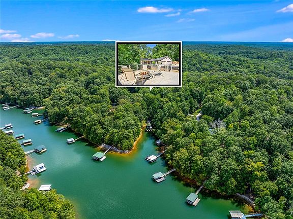 Beautiful lake property for the buyers who are looking for a home that also has a separate shop and 3rd car garage for projects or lake toys. Home has beautiful hard wood floors throughout, living room has a gas fireplace, kitchen has custom cabinets with great storage, also a wet bar and dining area. Large primary bedroom with double vanities, walk in shower and separate bathtub. Half bath and also oversized laundry room with sink are located on the main level. Check out the expansive deck overlooking lake Hartwell and the covered dock. Downstairs you will be thrilled to see the game room with bar for entertaining friends and family. Additionally, there is another bedroom with a full bathroom and a storage area. Owner converted third bedroom to a lovely office with French doors. Could easily be a third bedroom again. You will find a nice patio here as well with great views of lake and trees. For the cooler fall evenings grab a hot drink and head out to your firepit and relax. Don't miss the fact that this is a private cove with a covered boat dock. Community is guard gated which is an added bonus. What about golfing? Chickasaw Point offers an amazing 18-hole golf course with rolling hills which makes the course very challenging! Private beach area near the community center, boat ramp and courtesy dock. Pickleball/tennis courts and swimming pool. Enjoy dinner at the Overlook or a cold beverage with friends. Walking trails, dog park, and lots of community activities make this the perfect place to call home.