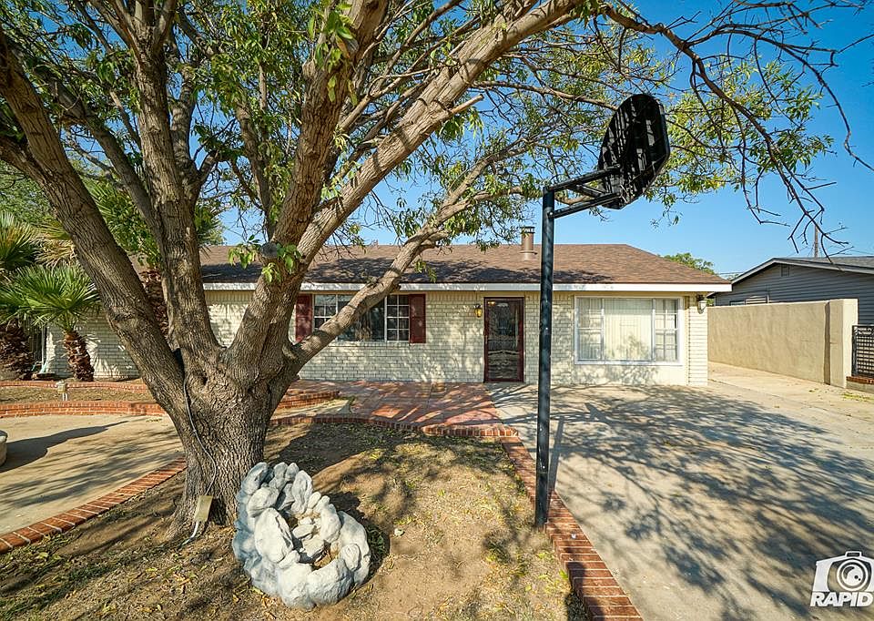 WONDERFUL 4 bedroom + 2 bathroom, 1730 Sq Ft home with tile and crown molding through out. Built in speakers in ceilings, elegant kitchen with stained cabinets/fancy back splash, built in gas cooktop and spacious kitchen island, sunroom. Sprawling private ground offers a resort feeling with palm trees, pool, attached bar and in-pool bar stools. palm hut with sand, gazebo with power &Stucco Fence.