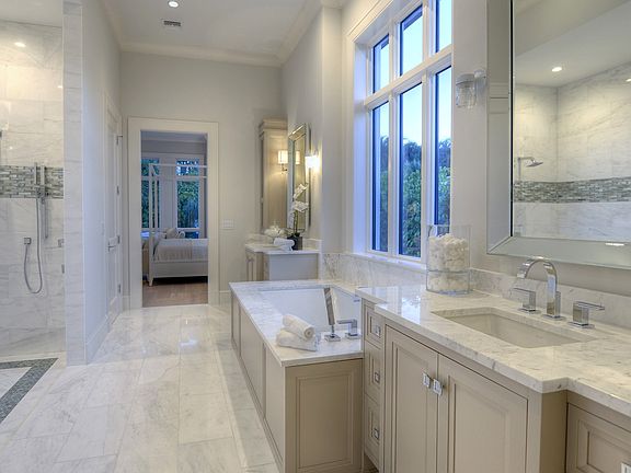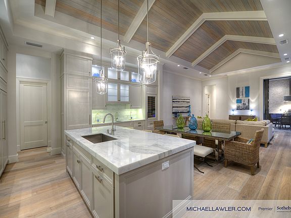 **For additional details on this property visit MICHAELLAWLER.COM or call 239-261-3939.**With ideal southern exposure, this coastal and transitionally-inspired new construction, single-family home is the epitome of style and elegance. The most-coveted icon of home building and design, this home plan received the Aurora Award, chosen out of 2,000 entries. The great room floor plan is designed with soaring tongue and groove ceilings, timeless driftwood flooring and ample glass throughout including the cabana room, which overlooks the resort-style pool featuring a stunning spillover spa. Tasteful marble countertops are surrounded by elegant Ruffino cabinetry to add to the modern coastal palette in this spacious, designer-appointed gourmet kitchen and wet bar area. Spend your evenings alongside your outdoor fireplace in the midst of the thoughtfully-designed landscaping, all situated on a quiet street in the Moorings. Residents of the Moorings are eligible for membership in the private Moorings Beach Park.