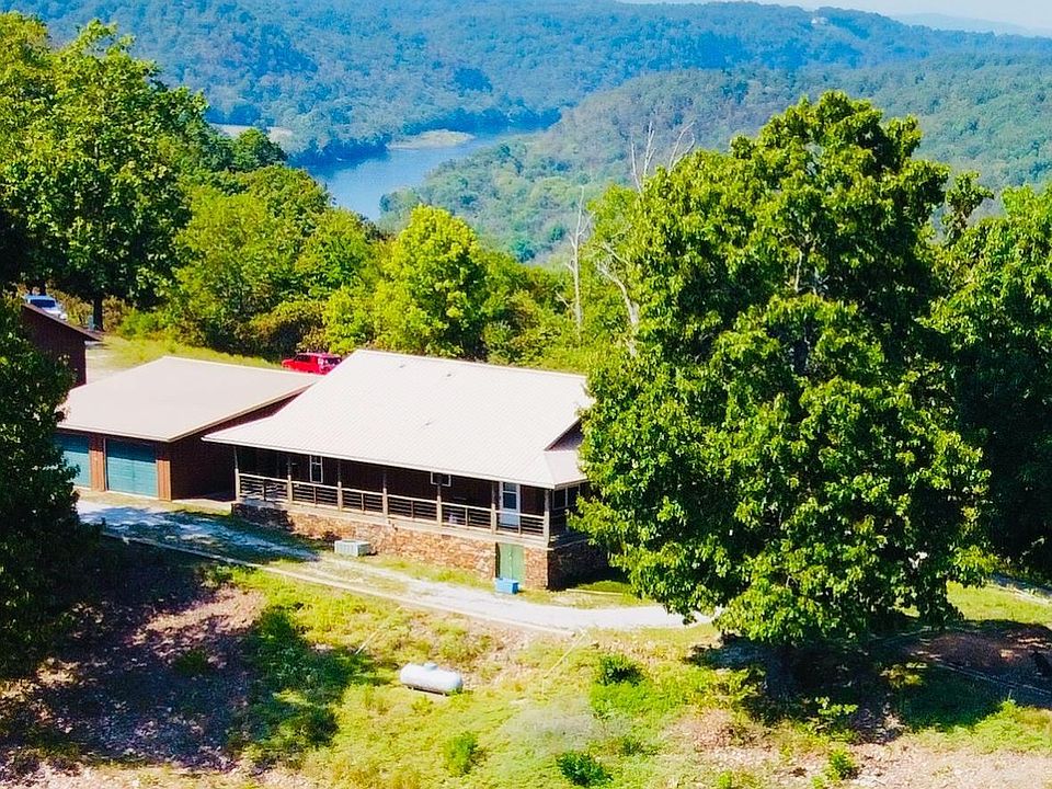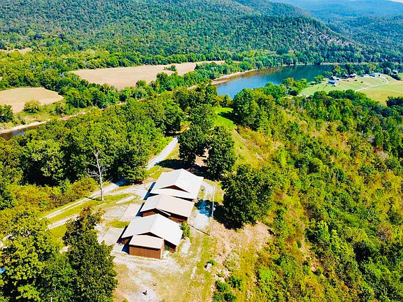 Million-dollar view!!! Prepare to be completely captivated by a view worthy of being chosen as a cover photo to represent the mountainous beauty of world-renowned Mountain View! The panoramic views from this gorgeous 10+ acre mountaintop property stretch across mountains, valleys, & the glistening White River below! Large windows in the well-maintained cabin frame magnificent views with a spacious open concept design, blend of farmhouse & rustic charm, & the timeless warmth of rich wood walls & flooring. Start your days on the covered wraparound porch as the morning mist rises from the river & enjoy relaxing evenings watching bursts of orange across the sky & water as the sun sets over the valley below. One detached garage has 4 garage doors with plenty of space for a workshop, home office, collectables, etc. A second detached garage has been uniquely converted into living quarters perfect for guests, in-law quarters, or for use as a nightly rental with a bedroom, full bath, & large kitchen/living combo plus a spacious loft to be finished for additional living space if needed. Beautiful, move-in ready, less than 2 miles to launch your boat for White River fishing, priced to sell!