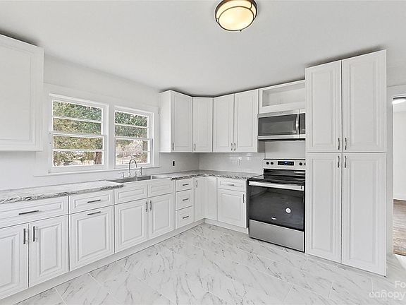 Full window replacement with a full-price offer! Step into a modern comfort with this recently renovated 2 bedroom, 1 bathroom home. An expansive living room greets you with refinished original hardwood floors that continue into all bedrooms. The kitchen features beautiful white cream cabinets paired with granite counters with a refrigerator, stove + microwave. Situated on a large flat lot, this home is under 10 min to the local hospital restaurants, grocery stores, hwy 321 & 85, and downtown Gastonia. Under 25 min to CLT airport, Uptown, WWC, and Daniel Stowe.