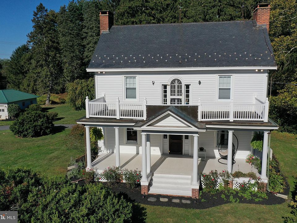 Homesteaders - make this splendid Country Estate your new home! Early 20th Century charm with columned front porch and balcony overlooking a sweeping front yard and farmland. The home retains much of its original floor plan with center hall, 3 fire places, 2nd level library opening to the front balcony, stained glass windows and finished 3rd level with intriguing nooks and crannies. Updates (1995) include replacement, tilt-clean windows; expanded, updated kitchen and main level laundry. Summer fun beckons with the well-maintained in-ground saltwater pool with diving board and fully fenced enclosure. Pool Updates include the vacuum system (2024), pump system and cover. Bring your farm animals to the spacious bank barn with vinyl fenced pasture and water to the barn. The property is nestled among permanently conserved farm land and custom built homes. Look for the detailed information, plat, maps and offer of an adjoining home site in the MLS Documents and Brochure. Video views available.