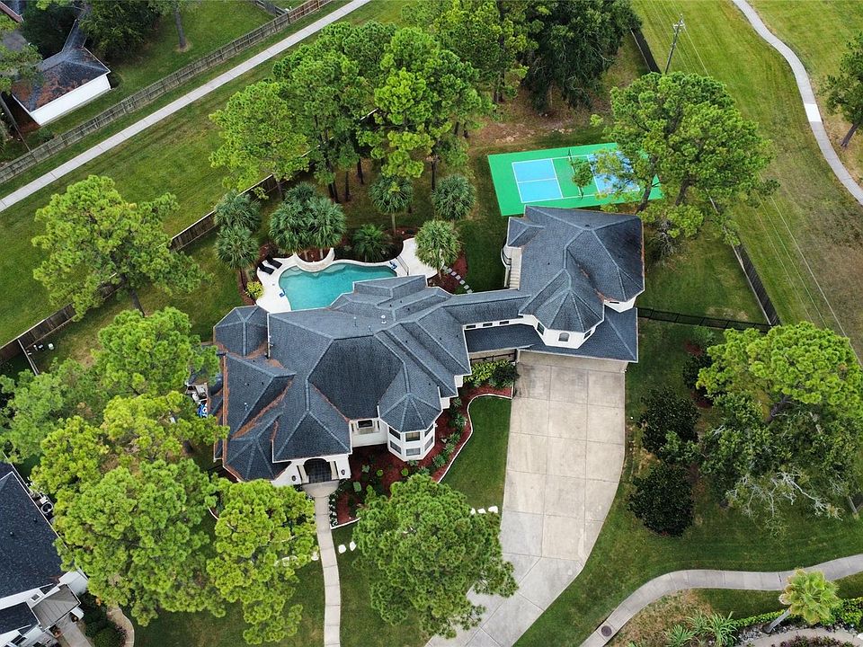 This exquisite home, situated on a private cul de sac street, offers a serene park-like setting on nearly an acre surrounded by mature trees. This dream residence features a resort style pool that beckons for sun-soaked afternoons. The property also features a private pickle ball court which is perfect for recreational activities. Upon entering the home, the family room boasts soaring ceilings and a striking wall of glass, inviting picturesque views into the heart of the home, while seamlessly connecting outdoor and indoor living spaces. Five spacious bedrooms, four and a half baths, and a private study, this home combines luxury and comfort, and offers ample space for family living. Come tour this property today.
