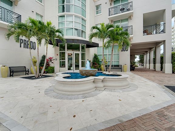 Live the Downtown Lifestyle! Walk to the Brightline, City Place, concerts and events on Flagler! Enjoy all the city has to offer at The Prado. Move in ready, contemporary 1 bedroom, 1 bathroom condo with den/office, updated laminate flooring in the main living areas, newer a/c and water heater, available furnished and turnkey or unfurnished, with balcony and covered parking spot. Walk-in closet with built-ins for easy and efficient storage. Plenty of natural light.  Enjoy the 5th floor amenities just steps from your door: beautiful resort-style pool and fitness center, doorman building. Dog park on site, pet friendly. Great for investors, can lease right away 30 day min up to 12 times/year. Easy to show!