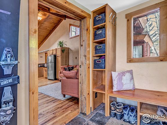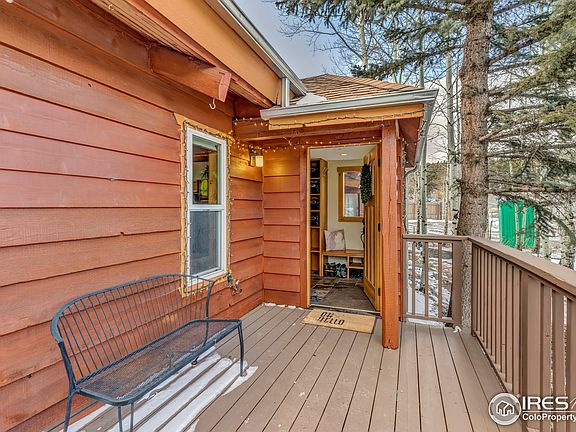 Adorably charming and comfortable oasis walking distance to downtown Nederland. This warm and inviting home features two living spaces, a dining room area, and an updated kitchen with newer stainless steel appliances, granite countertops, and plenty of storage including a large walk-in pantry. Two bedrooms on the main level, each with a bay window, and an upstairs bedroom with skylights and a large, custom built walk-in closet. Both bathrooms on the main level are updated - one with brand new tile, tub, vanity, lights. New slate tile in laundry room with newer washer and dryer. Spiral staircase takes you up to a spacious loft. Out back is a large flagstone patio, two big sheds and a newer Tuff Spa hot tub. Extra thick front walls and an enclosed mudroom mitigate road noise. Tons of storage. Parking for 4 vehicles in the driveway. Amazing location near downtown and Eldora. Video will be uploaded Saturday, 1/23.