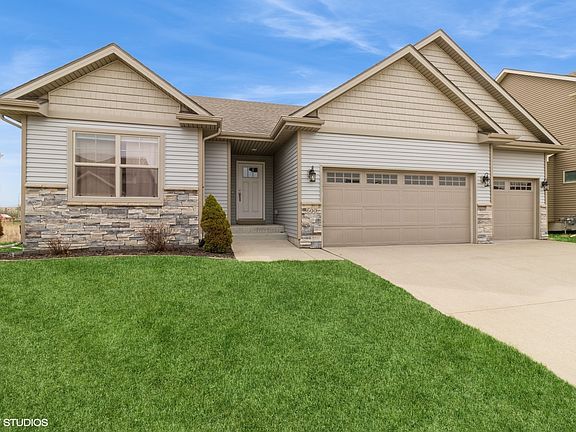 Welcome to 600 SE 17th Street in Grimes! This charming ranch-style home features 4 bedrooms, 3 bathrooms, and a 3-car attached garage. The open-concept main level boasts a bright living area and a modern kitchen equipped with white cabinetry, stainless steel appliances, granite countertops, and a tile backsplash. The primary suite offers a walk-in closet and a private bath with a tiled shower and double vanity. The finished lower level includes a spacious family room with a bar island, an additional bedroom, and a bathroom. Enjoy outdoor living on the covered deck overlooking green space. With easy access to Hwy 141 and I-35, commuting to the metro is convenient. Don't miss
