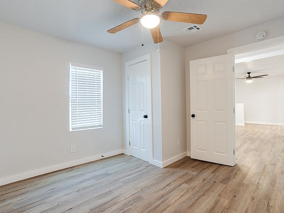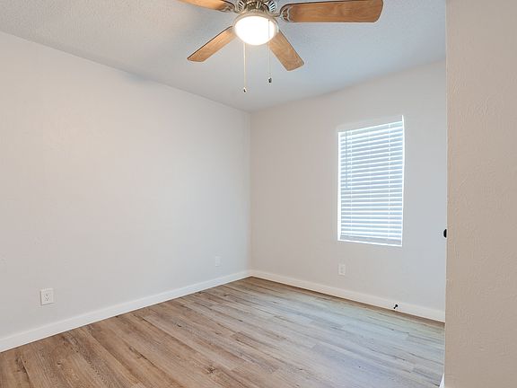 The bedrooms are comfortable with natural light and ceiling fans, while the bathroom has been upgraded with sleek tile and fixtures. A dedicated laundry space adds convenience. Outside, the home sits on a spacious corner lot with room to enjoy the outdoors.