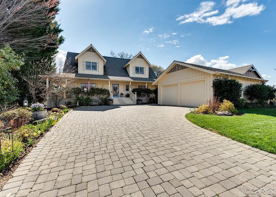 Beautiful French Country Home with wrap-around porch, located in Greenhorn Creek. Relax on the covered porch with beautiful views of the golf course, golf course lake, rolling hills and sunsets. Minutes away from water sports, hiking, wine tasting and little over an hour away from winter sports. This designer home is filled with many extras including: Antique front door; French doors in great room; decorator lights; 100 year-old fireplace mantle with gas starter; Dutch doors in downstairs master bedroom and laundry area; kitchen stainless steel and butcherblock counter tops, two French bistro shelves, stainless steel appliances, pullout cabinet shelves and walk-in pantry; French marble vanity sinks in downstairs master bath and quarter bath; master bath with a large walk-in overhead shower; vaulted ceilings in upstairs office/library loft area; two upstairs bedrooms, and that; upstairs bath jetted tub with separate shower and antique storage cabinet; French doors in upstairs bedrooms with small balconies; home includes landscaped country gardens, outdoor lighting and automatic watering system.