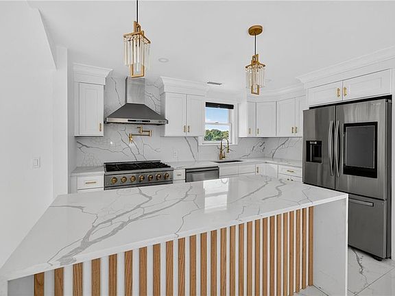 This stunning 2-3 bed, 2 bath home is loaded with luxury upgrades and high-end touches. From gleaming gold and marble finishes to premium appliances, every detail exudes style and sophistication. Enjoy year-round comfort with electric heat and central air. The fully fenced yard is expansive and perfectly set up for entertaining and features a heated above-ground pool, spacious deck, and a storage shed. 1-car garage and horseshoe driveway offering plenty of parking. The finished basement adds valuable square footage for a flexible use area, and offers incredible in-law potential. This home blends upscale design with practical features, making it a rare find you won’t want to miss!