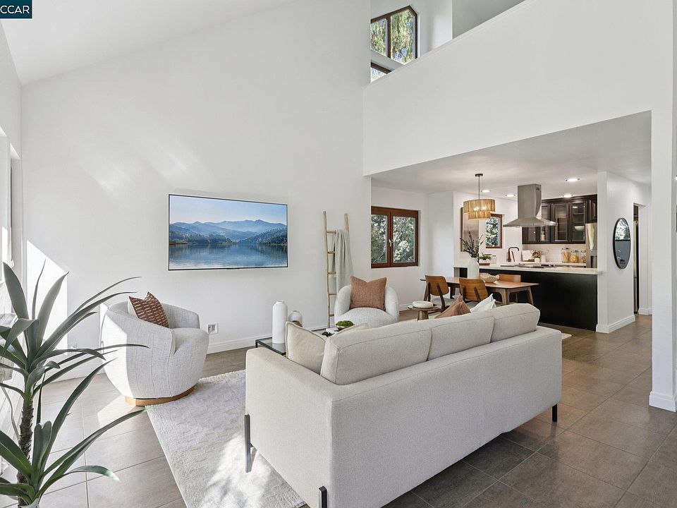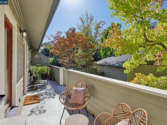 Imagine living in this exclusive retreat at the end of a cul-de-sac featuring soaring ceilings, windows with views to the majestic trees and peaceful landscape that has been tastefully remodeled from top to bottom! This end unit is filled with soft light and enjoys two ensuite bedrooms (or make one an office), with open floorplan, designer kitchen with quartz counters and stainless steel appliances and nearby laundry closet. You'll love sitting on the front patio adjacent to the greenbelt or relaxing on the balcony overlooking the trees with peek-a-boo views of Mt. Diablo. The designer bathrooms complete the feeling of escape as does the wooded pathways, swimming pool, picnic area, and basketball court in the complex. One-car garage and visitor parking at the end of a quiet cul-de-sac, yet near shopping, transportation, freeways, schools, hiking trails, and parks. Open house 10/11 & 10/12 1-4 pm