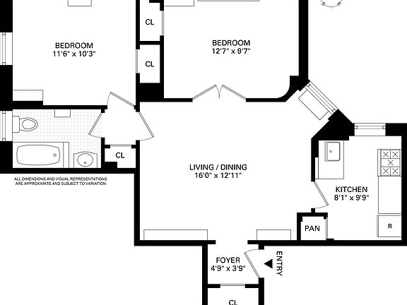 Located at the corner of 115th Street and Broadway, this bright and spacious 2-bedroom, 1-bathroom home