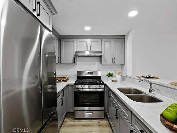 Fully Remodeled 1 Bedroom 1 Bathroom Open Concept condo located in the Heart of Downtown Santa Ana. Unit is located on the 2nd floor. Stunning Light Oak Vinyl Flooring runs throughout the entire unit. The Newly Renovated Gourmet Kitchen features Beautiful New Cabinetry, On Trend Black Hardware, New Stainless Steel Appliances and Gorgeous Quartz Counters. Enjoy a Spacious Living Room and the perfect Dining Area. The Newly Renovated Bathroom offers a Spacious Walk In Shower and Relaxing Bathtub for convenience, Dual Sink Vanity, and Designer Light Fixture. The Light and Bright Bedroom is Spacious, Freshly Renovated with Vinyl Flooring, Ceiling Fan, and Recessed Lights. Enjoy the views of Lush Trees on your Spacious Balcony perfect for that morning cup of coffee! This Home Is Move In Ready! Convenient Location within Walking Distance of the Santa Ana Civic Center, Schools, Variety of Trendy Restaurants and Shopping. HOA offers a Gated Community, with Underground Parking, and Laundry Room.