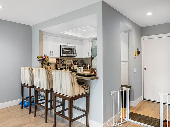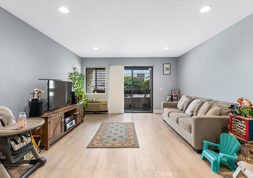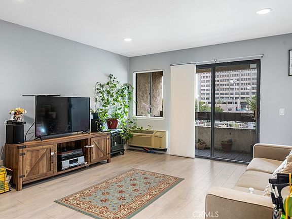Welcome to this perfect starter or downsize condo in the heart of downtown Santa Ana. Located at the top so you have no neighbors above you. Upon walking in the unit you are greeted to a turnkey, open layout with refreshing upgrades throughout. The bathroom also has a separate shower aside from the tub and shower. The bedroom has 2 separate closets. There is a spacious balcony looking out to the street with an additional storage closet. There is one designated parking space in the garage with a storage unit. There are also 2 pools in the community. Laundry is also just a few steps away near the elevator entrance making it convenient.