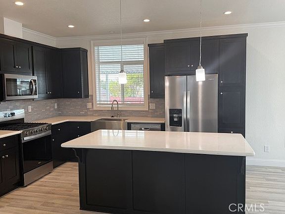 Welcome to your brand new home. This beautiful home is approximately 1430 sq/ft living space with 3 bedrooms and 2 bathrooms. Upon entering, you're greeted with a spacious living room and leads to a stunning kitchen with big quartz countertops island, stainless steels appliances include: refrigerator, dishwasher, cook range and microwave plus undermount farmhouse sink with ultra pulldown faucet. Dining area with big bay windows to welcome natural sunlight. Quarts countertops throughout home. Walk-in closet in master bedroom. Double sinks in master bathroom, clear glass shower doors enclosure and wood frame mirror. Ceiling fans throughout. Upgraded vinyl flooring throughout home, 100% water resistance. 9 feet ceiling. There's a shed for additional storage. 7 Years Warranty. Monthly space rent is $900
