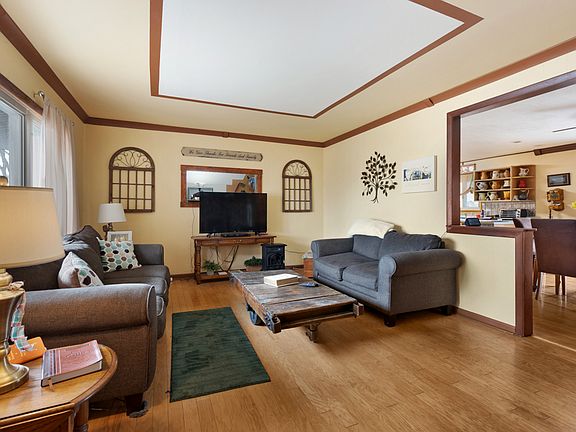 Desirable ranch on a quiet street. Long time owner hates to leave this lovingly cared for home. You are greeted by hardwood floors and a cozy fireplace. Open floor plan. Updated kitchen & appliances with lots of cabinets. The 2nd garage was converted to a family room. Updated primary bathroom. Updated roof approx. 6 yrs new with vinyl siding makes this a carefree home. Furnace approx. 6 yrs. new. Dishwasher is "as is", will provide credit. Ceiling fans in all bedrooms, as well as Dining area and family room. Large Backyard with wood fence, shed, and large patio will be wonderful for upcoming grilling season.