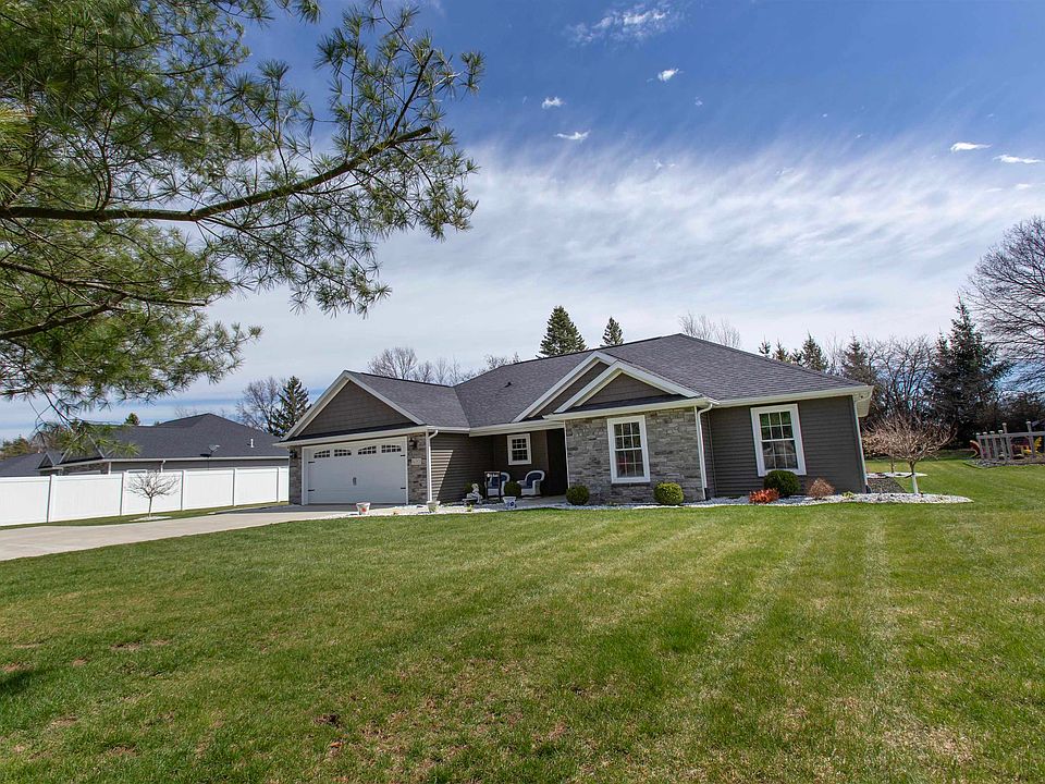 Experience refined living in this custom-built 3-bedroom, 2-bathroom sanctuary. Discover a stunning cathedral ceiling in the living room and a spacious kitchen with a pantry, seamlessly blending style and functionality. Laminate floors grace key areas, while the main bedroom features a large walk-in closet. Step outside to the expansive porch area, or utilize the pull-down attic steps in the oversized garage for additional storage. With meticulous maintenance evident throughout, this home is a testament to both luxury and care.