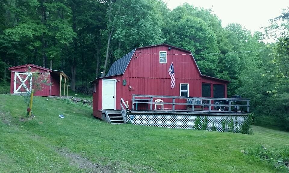 Great Family Getaway or Hunters PARADISE! A little piece of heaven sits here with this COZY CABIN that sits on 11.14 acres. This cabin has living area and a loft, bathroom, a wrap around deck (half of it is screened in) to sit out and enjoy the sights and sounds of NATURE that surround you. This cabin has been well kept and is insulated, has electric heat and a beautiful wood stove for those chilly nights. Nice 12' x 32' outbuilding (with electric) for your recreational toys and more. STATE LAND nearby. Nearby you will find some small town shopping and the Pepacton Resevoir, rivers to enjoy kayaking, canoeing, fishing and more! Call today!!