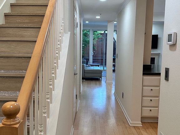 Beautiful two story townhouse in Menlo Park - inviting open floor concept that effortlessly connects to the outdoors. The main floor features a kitchen with granite countertop and stainless steel appliances, dining room, living room, powder room and attached garage. 2 bedrooms are upstairs, the primary suite features two closets, including a walk-in closet, dual-sink vanity and a shower over the tub. Guest bedroom is very spacious with Jack and Jill bathroom attached. Hallway has additional storage space and laundry units (new washer and dryer). The townhouse comes with 2 parkings, 1 is attached and 1 is a reserved spot. It is conveniently located near downtown Menlo Park, Palo Alto, parks, top-rated Menlo Park schools, Stanford, Google, Facebook, Apple and other major tech companies.