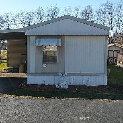 This is a well built mobile home, made in 1994. It is located in Beth Mobile Home Park in southwest Canton near Navarre. Fairless Local School District. Pets are OK. Water, sewer, trash, and Spectrum included in the lot fee. Built-on room is fully finished with closet space and could be an additional bedroom, office, or storage room. It has self storing storm windows and a brand new natural gas furnace replaced February 2022 with central air conditioning. New insulation was recently installed and sealed under the mobile home. Water heater in working condition. Spacious kitchen/dining area with countertop breakfast bar. Convenient in-home laundry area. Master bedroom has a walk-in closet. Metal roof and and a very nice, well-built carport with paved parking. The yard features a cozy concrete patio, shed, space to build a side deck, garden beds, and a spacious communal backyard area next to a scenic creek and pond with no flood risk. It is currently in a fixer upper stage as many renovations were started (nothing structural) so you have the opportunity to personalize the home with your own finishing touch. Guest bathroom is fully functional. The old bath tub was removed from the master bathroom but the brand new garden tub and the majority of the parts are available ready to be installed, the rest of the master bathroom is fully functional. The carpet has already been removed as well. Cosmetic drywall work and flooring still needs done. Buyer to assume all further renovations, selling as is. The buyer must be approved by Beth Mobile Home Park management before purchasing the home. This deal won't last long!