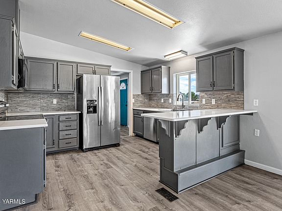 Updated 4 BR / 2 BA home. Large living room with laminate flooring and built-in cabinet in the dining area. Kitchen features quartz countertops, tile backsplash, and stainless steel appliances. Spacious primary bedroom with updated full bath. Detached, insulated two-car garage. Covered deck and fenced yard. One bedroom connected to primary bedroom.