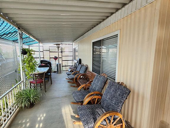 Beautiful 2 Bedroom/2Bathroom Manufactured Home in the 55+ Hillcrest Community! This home features an open layout with plenty of natural light, spacious living room and dining areas with wide windows creates an inviting atmosphere to relax and enjoy. good size kitchen with plenty of storage and counter top space as well as a breakfast bar to let your creative inner chef delight your guests with amazing culinary creations. Large primary bedroom with a full bath offering a walk-in shower plus a separate bathtub. Perfect sized guest bedroom and indoor utility room. The exterior features an extended covered patio perfect to enjoy the sunset, a nice backyard with a medium size storage shed and a covered two car carport. The front of the house features an iron fence and gates to access that gives it privacy and curb appeal. Space rent is only $635 includes water and trash collection. Call your favorite Realtor for a private showing today! Llame a su agente!