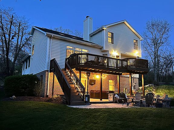 Outdoor living shines with a two-level deck, patio, and a stone fire pit area—ideal for entertaining under the stars. New landscaping enhances curb appeal and outdoor enjoyment.